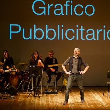 Piano B è un progetto personale che fonde professione e vissuto: nasce dall’esperienza di un logo progettato nel 2020, un periodo difficile per tutti. È una performance cantata e recitata con musica dal vivo, accompagnata da un quintetto di musicisti. Lo spettacolo ha viaggiato tra teatri e spazi culturali del territorio, coinvolgendo il pubblico con un format che mixa immagini, voce e musica su spunti legati al nostro tempo.